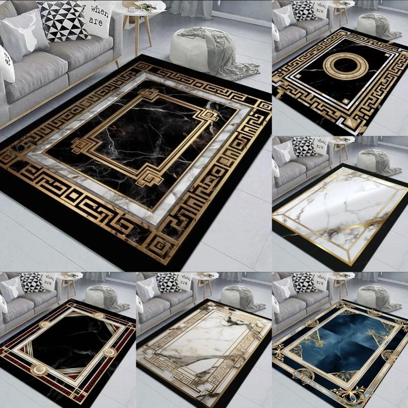 Elegant Black Gold Marble Rug Decorative Carpet for Living Room Large Area Floor Mat Non-slip Doormat for Hallway Balcony