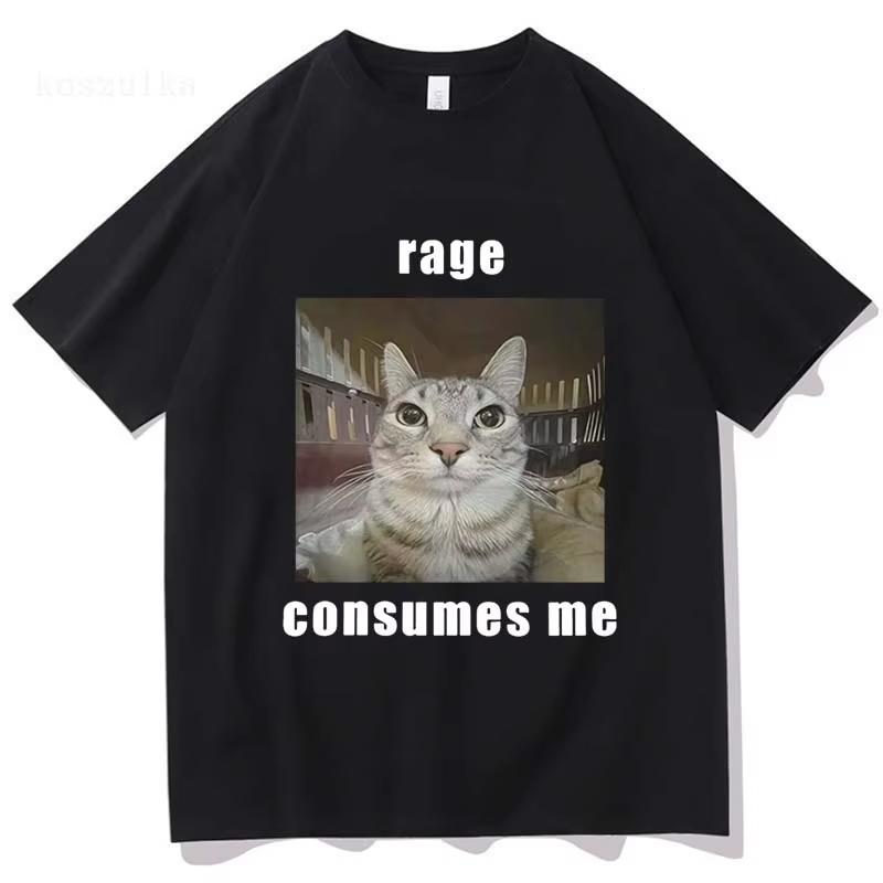 Funny Rage Consumes Me Cat Meme Graphic T Shirt Fashion Vintage Short Sleeve T-shirt Men Women Casual Cotton Oversized T-shirts