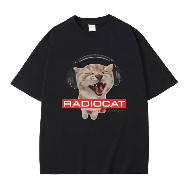British Rock Band Radiohead Fun Cat Love Rock Print Pattern T-shirt Fashionable Round Neck Short Sleeved Street Breathable Top