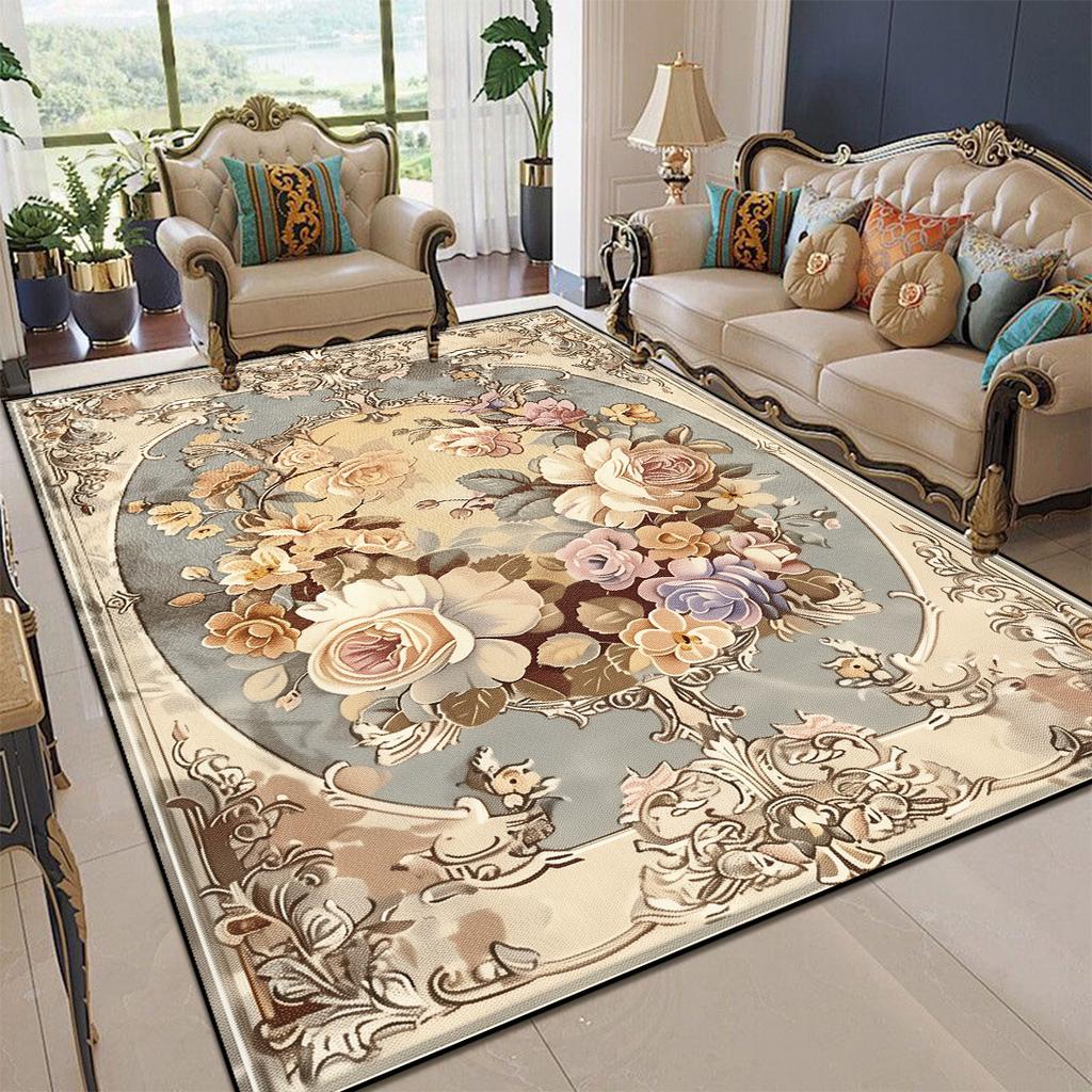 European Carpets Living Room Pastoral Flower Home Rug Large Bedroom Luxury Pattern Floor Mat Washable Non-slip Entryway Door Mat