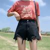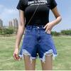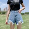 Classic and Minimalist Fashion Versatile Black Broken Holes Women's Summer High-waisted Outside Wear Thin A-line Wide-legged Ragged Denim Shorts