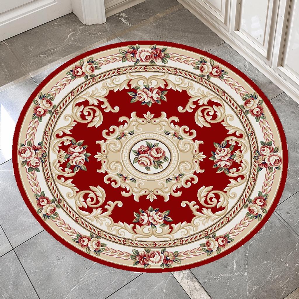 European Style Luxury Round Carpet Non-slip Flower Pattern Bed Room Computer Chair Mat Living Room Decoration Washable Rug