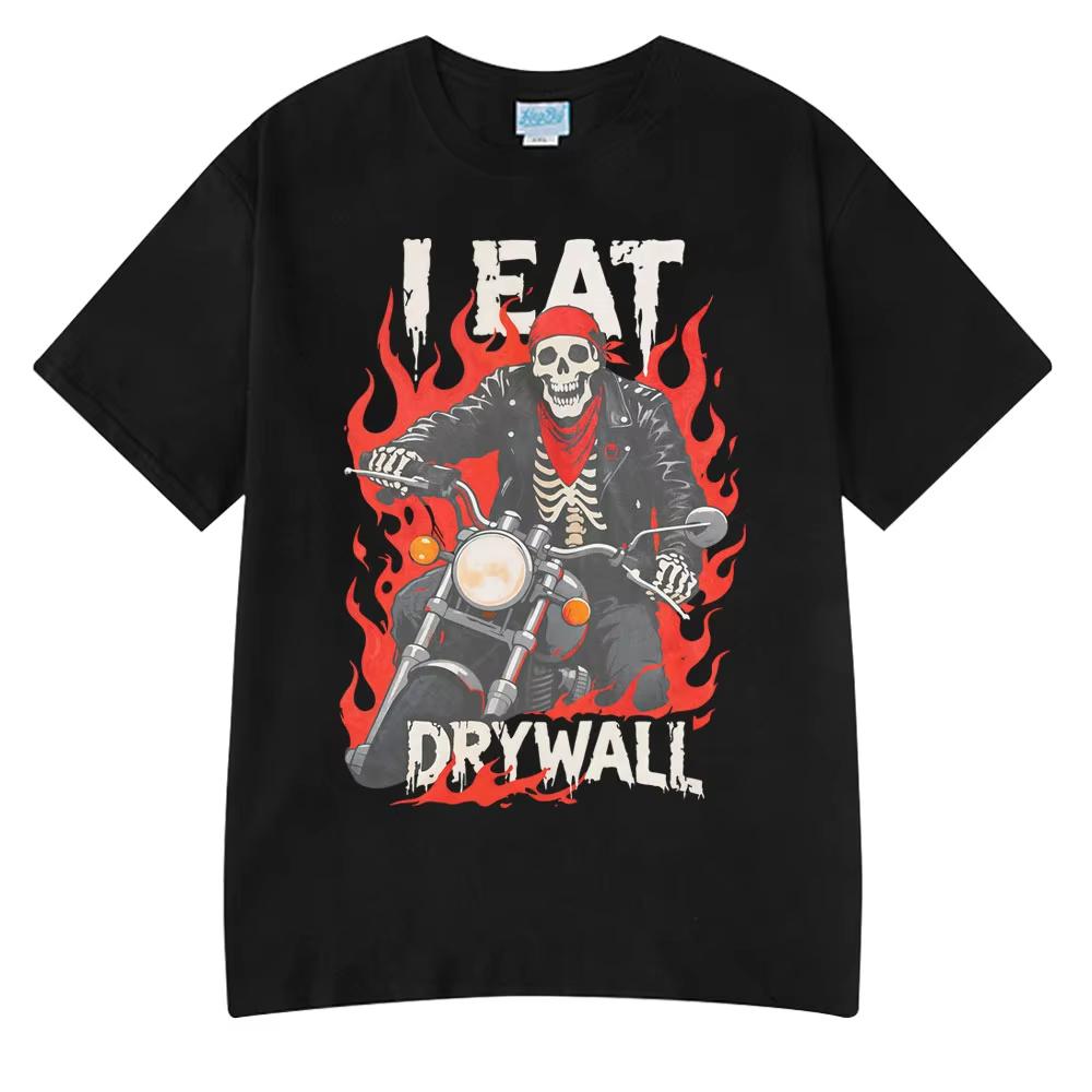 2025 Hot Sale I Eat Drywall Funny Meme T Shirts Humor Cursed Skeleton Biker Gothic Graphic Funny T Shirts Classic Style T-shirts