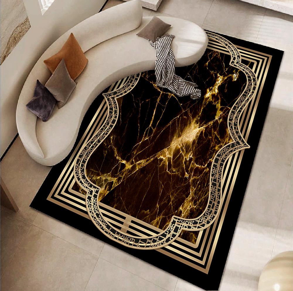 Luxury Black Marble Sofa Rug for Living Room European Large Area Non-slip Decoration Carpets Bedroom Study Tatami Soft Floor Mat