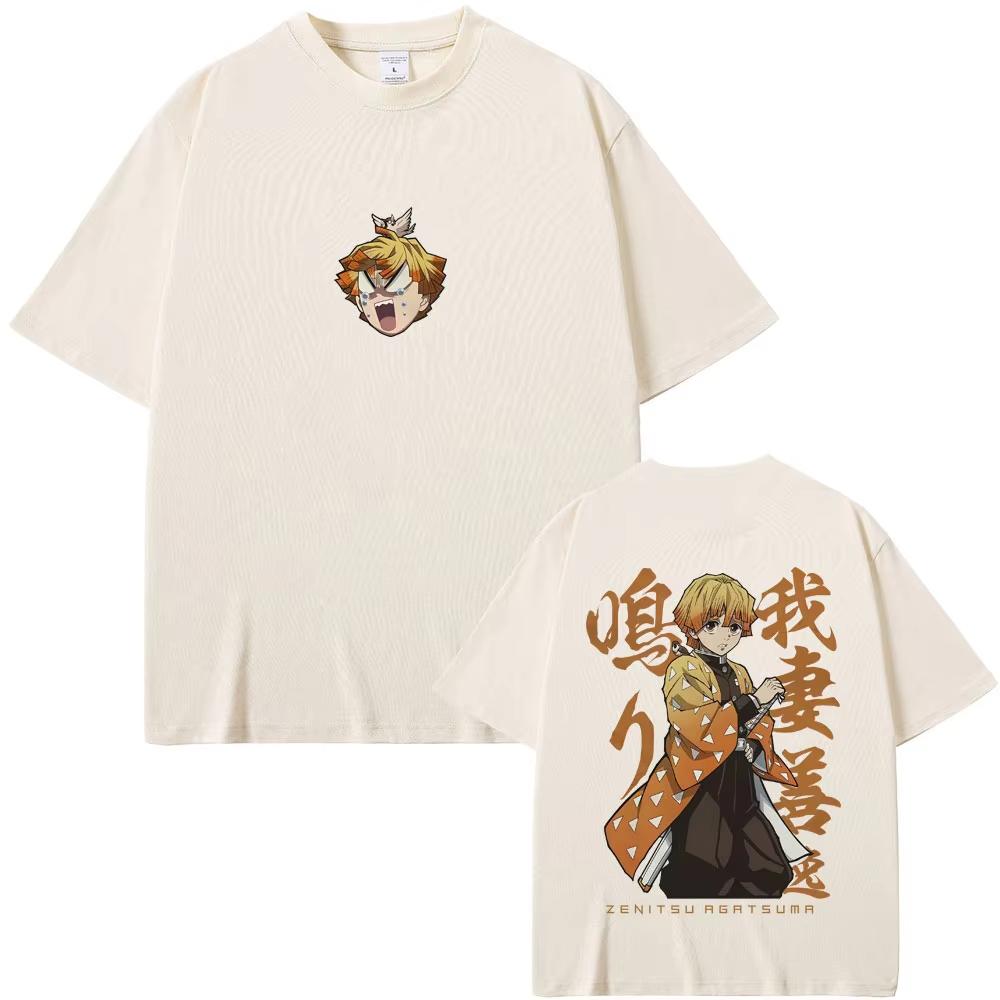 Anime Demon Slayer Agatsuma Zenitsu Graphic T Shirt Men Women Clothing Fashion Oversized Cartoon Streetwear Male Casual T-shirts
