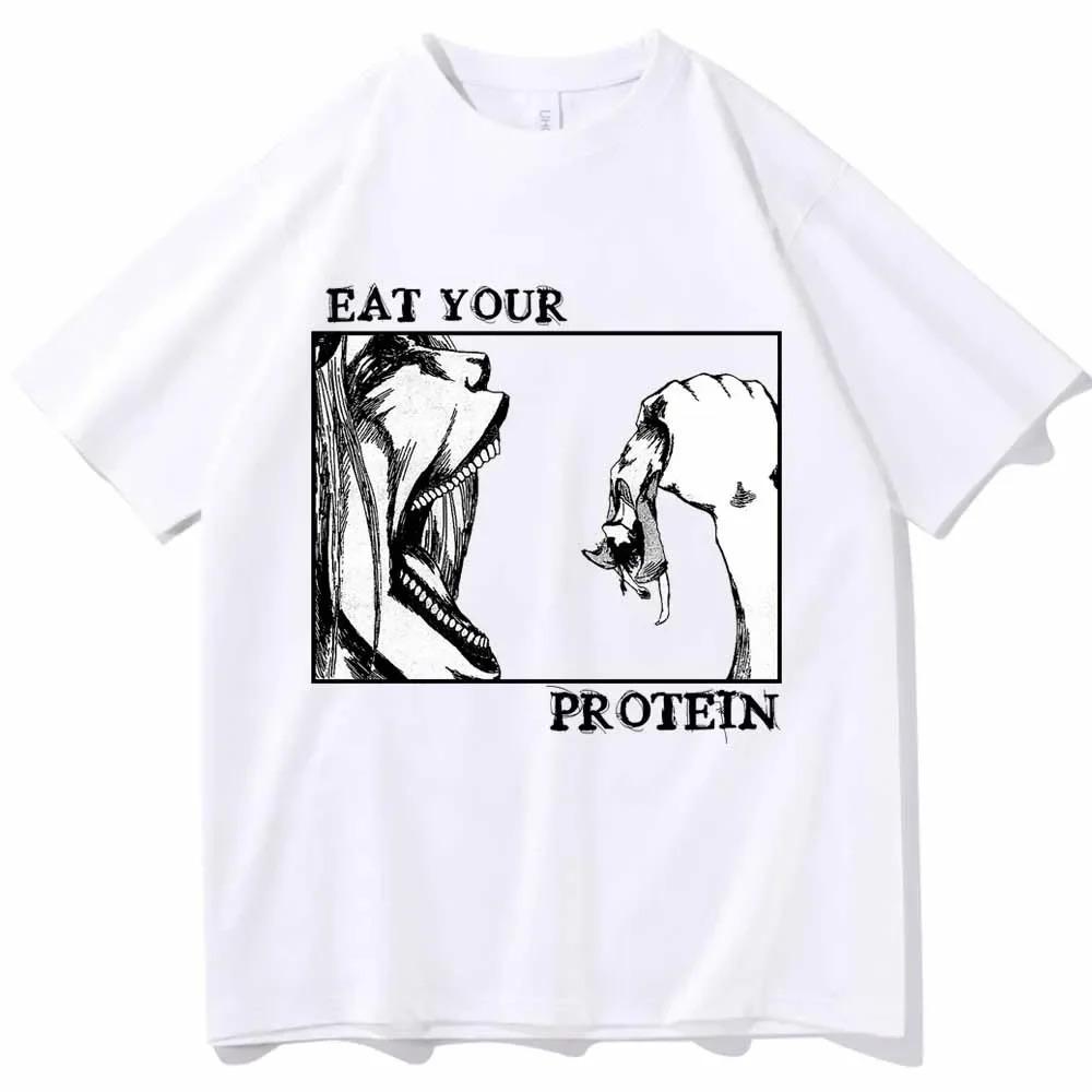Attack On Titan T-Shirts Eat Your Protein Shirt Man Women Summer Casual O-Neck Short Sleeve Shirts Best Selling High Quality Tee