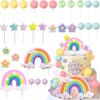38pcs Rainbow Cake Topper Rainbow Theme Party Supplies Pastel Balls Cake Topper Boho Cake Toppers