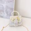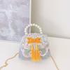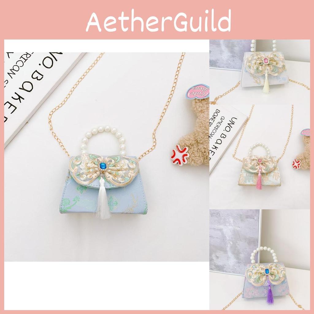 Lovely Geometric Patterned Shoulder Bag For Kids Featuring Chic Tassels And Elegant Pearls
