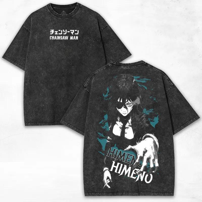 Himeno Chainsaw Man Graphic T Shirt Men Women Short Sleeve Cotton Tshirts Vintage Washed Tee Harajuku Male Oversized T-shirt