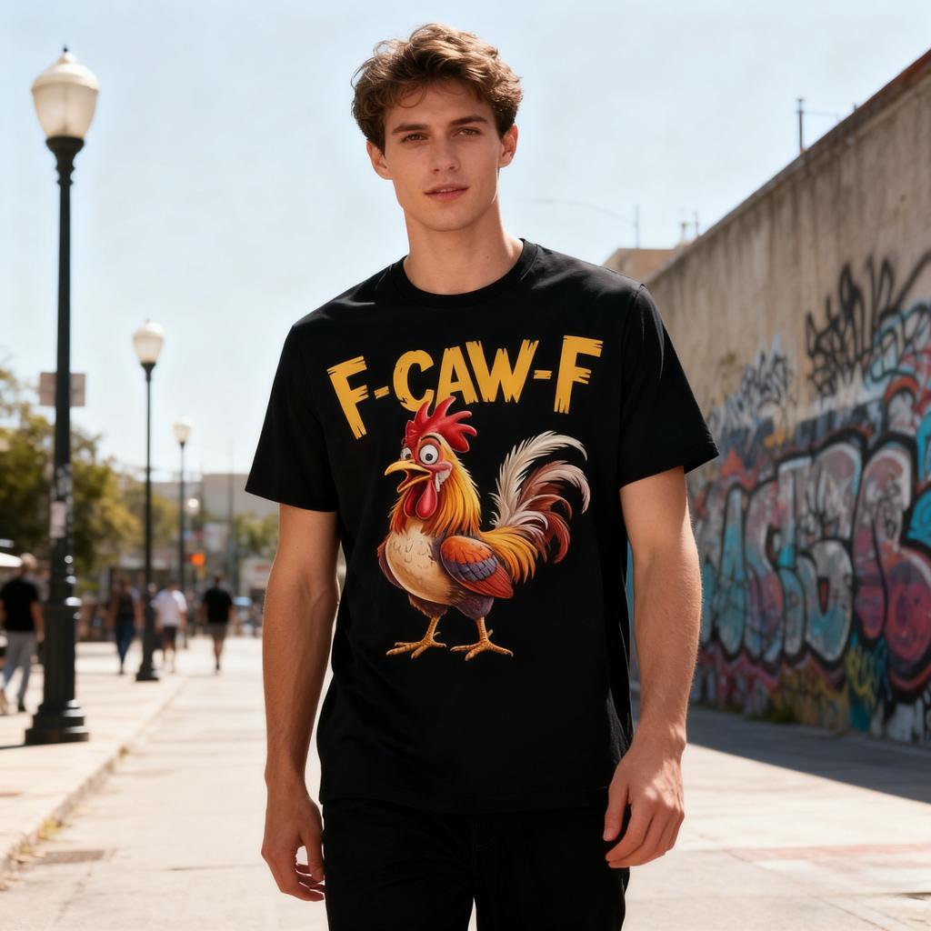 Men's Casual T-Shirt Street Style Funny Cartoon Rooster F-CAW-F Graphic Print Short Sleeve Top Trendy Tee
