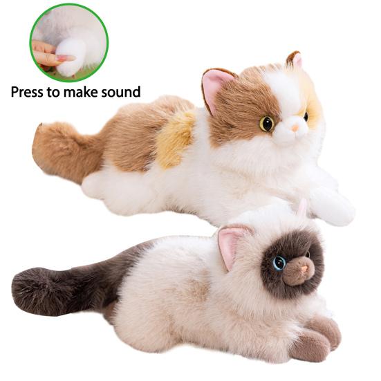 Interactive Sound Feature: Equipped with a built-in sound device in the front paws, this plush cat responds instantly with realistic meows when touched. This interactive feedback simulates genuine pet interactions, enhancing the immersive experience of petting and bonding without the need for a realistic animal.