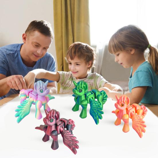 This 3D printed horse figurine features flexible, movable joints, making it an ideal fidget toy for stress relief and imaginative play. Crafted from high-quality PLA material, it boasts vibrant colors and a smooth texture that realistically captures the horses appearance. Its compact size allows for easy handling and impressive display on desks, car dashboards, or shelves.