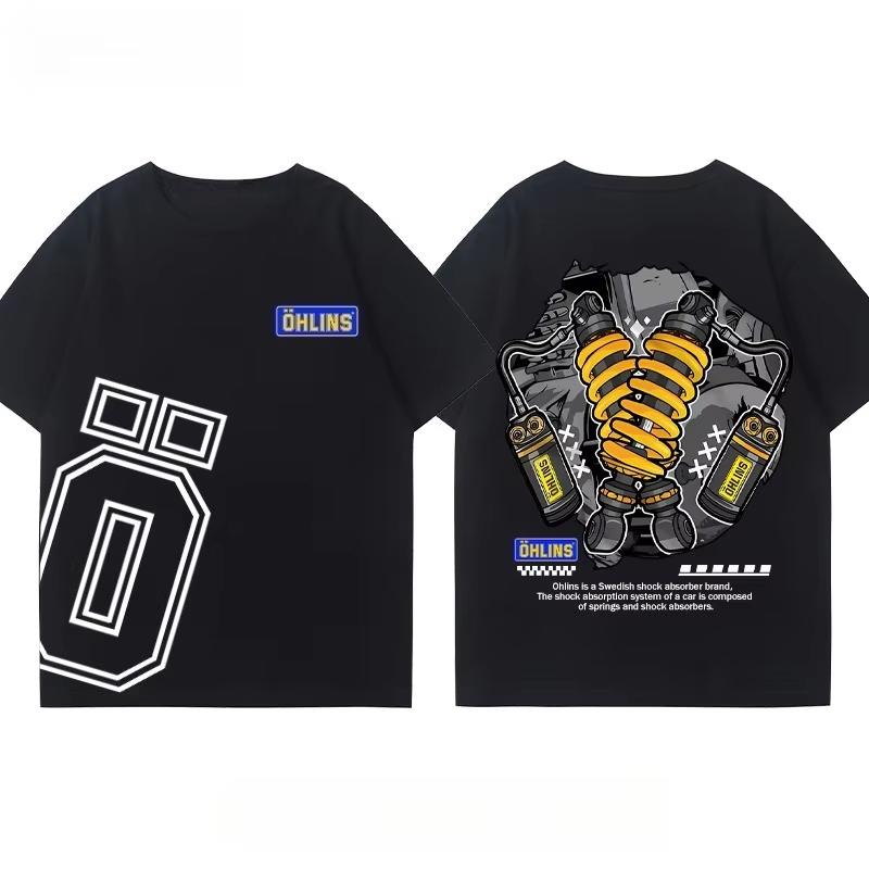 OHLINS Motorcycle Shock Absorber Modified T-shirt Clothes Casual Trendy Brand Men's Women's Car Club Crew Neck Short-sleeved Top
