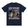 Hide Your Wife Alpha Here. Fun Werewolf Emoji Graphic T-shirt for Men. Fashionable Hip-hop Casual Cotton Short-sleeved