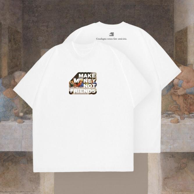 The Last Supper Logo American Pure Cotton Short-sleeved T-shirt with Italian Print, Loose and Casual MMNF