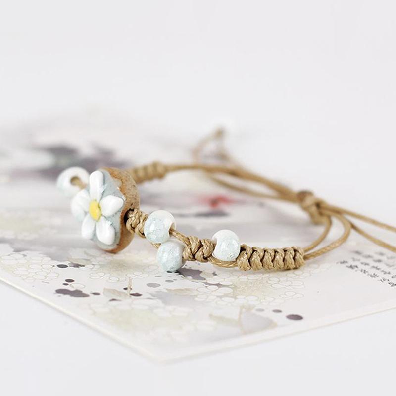 Handmade Sunflower Leaf Ceramic Bracelet Boho Adjustable Jewelry For Women Vintage Ethnic Gift