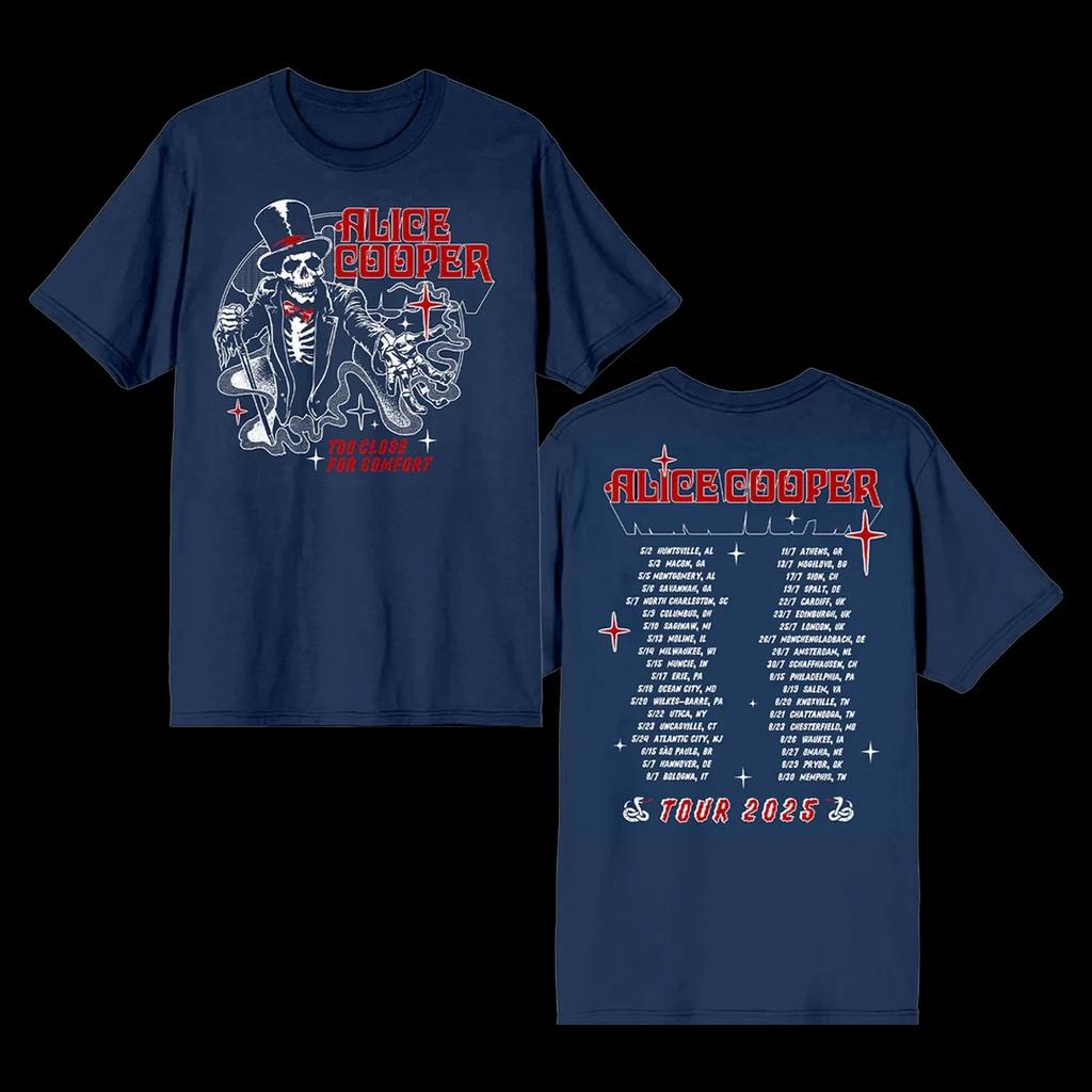 Alice Cooper 2025 Tour T-Shirt Too Close for Comfort – Concert Dates Back Prin High-end Luxury Is for Both Men and Women Top Y2k
