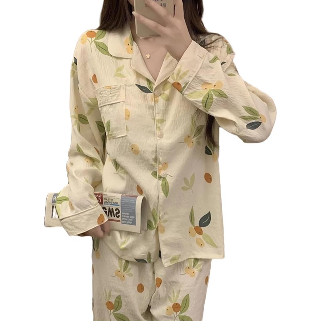 [Exquisite Loose Casual Pajamas] The top of this pajama set features a V-neck design. The V-neck not only exposes more skin below the neck, making it more comfortable and refreshing to wear, but also visually elongates the neckline, creating a swan-like neckline and slimming the face. The cuffs are cylindrical and feature delicate and charming prints, including scattered orange, green flowers, dopamine-colored stitching, and cute dots, creating a sweet and adorable look. There is a pocket on the front of the chest for storing small items. The embossing and embroidery patterns on each garment are carefully selected based on popular elements, creating a sweet and elegant look. The exquisite stitching on the neckline, cuffs, and hem, as well as the smooth interior lining of the pajamas, all reflect strict quality control. A variety of styles are available, including orange, green flowers, dopamine-colored stitching, and polka dots.