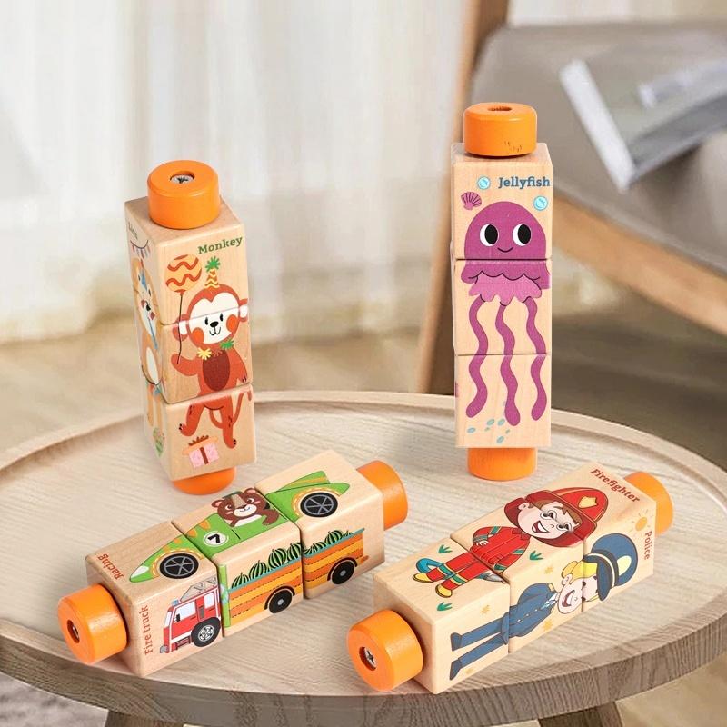 Baby Wooden Rotating Jigsaw Puzzle Hand Bell Toy Baby Mobile Musical Rattle Toy Montessori Puzzle Game For Babies Newbaby Gift