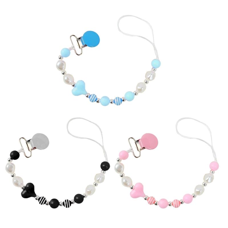 Colorful Crystal Bead Pacifier Chain Upgraded Anti-Drop Chain Round Clip Used for Newborn Girls Essentials- Baby Shower-