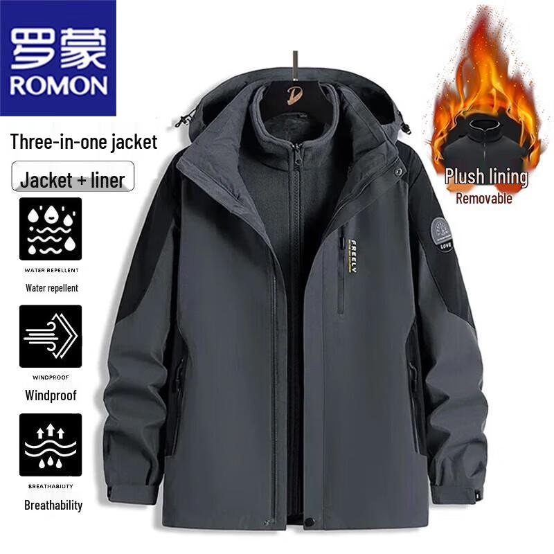 ROMON Men's 3-in-1 Autumn Winter Windbreaker Jacket