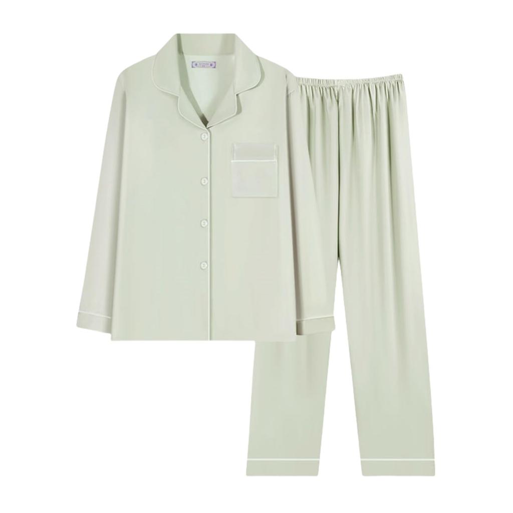 [Combining design and comfort] Carefully sewn, the thin, firm fabric, and collar create a neat look. The button-front closure and wide cuffs make putting on and taking off easy. The pajamas, accented with piping, are simple yet stylish for a sophisticated look. The elastic waist makes them suitable for all seasons. A comfortable pajama set is essential for starting your weekend off right.