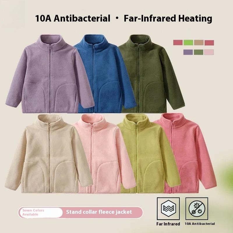 Autumn Winter Kids Outerwear Polar Fleece Jacket Zipper Thermal Coat for Boys Girls Solid Warm School Layering Cozy Tops Clothes