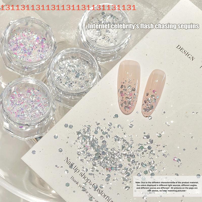 Mermaid Sparkle Nail Art Glitter Ultra-Thin Laser Flakes Holographic Sequins 1 Jar Irregular Loose Nail Dust Accessories