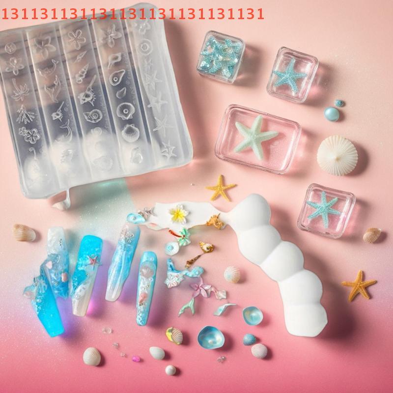 1PCS 3D Acrylic Nail Mold Sea Shell Starfish Goldfish Koi Fish Summer Coral Flower Butterfly DIY Silicone Nail Art Mold