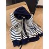 Contrasting Splicing Striped Hooded Long-sleeved Knitted Cardigan Sweater Jacket Women's New Early Autumn Top
