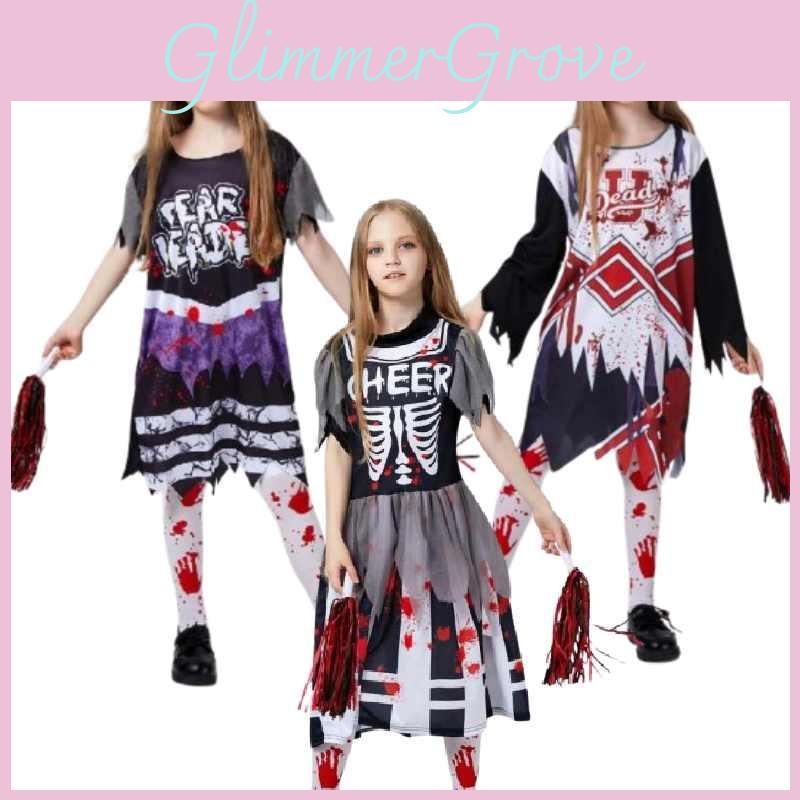 Experience a thrilling halloween look with this zombie cheerleader costume