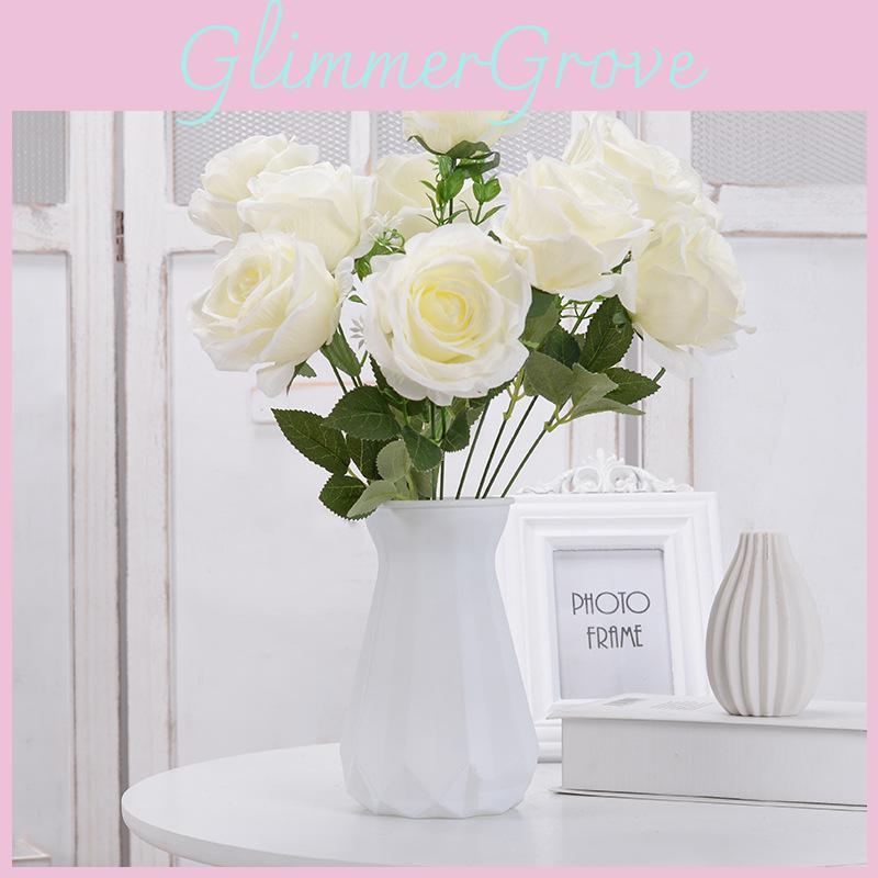This set of ten faux rose bouquets features realistic silk flowers with detailed pouring craftsmanship for authentic appearance. crafted from durable silk material in vibrant colors including red, pink, white, gray, green, and champagne. These versatile artificial roses are ideal for wedding dcor, home accents, hotel decoration, outdoor events, or photography props. Easy to maintain, simply wipe clean with a damp cloth to keep them looking fresh and beautiful.