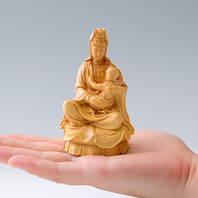 Dsdsad Wooden Buddha Statue, Seated Mother Kannon, Premium Boxwood Wood Carving (10cm Tall X 5.5cm Wide) "Prayer for Safe Childbirth, Guardian of