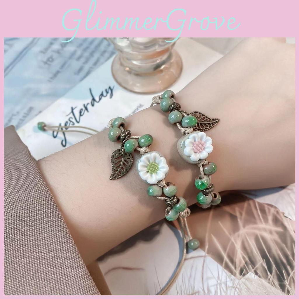 Beautiful Summer Floral Beaded Bracelet With Ceramic And Rope For Women In Fresh Style