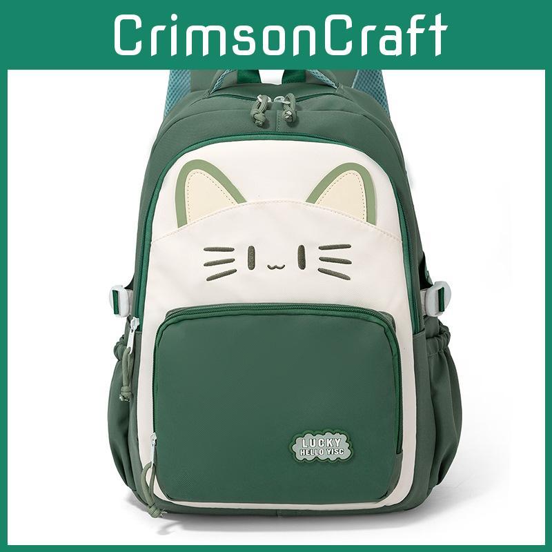 This Japanese-style cute cat-themed backpack features a spacious main compartment, supporting daily school use and reducing load with ergonomic curved shoulder straps. Made of durable nylon with a polyester lining. Ideal for middle school students, its suitable for classroom and casual outings. Wipe clean with a damp cloth to maintain its vibrant design.