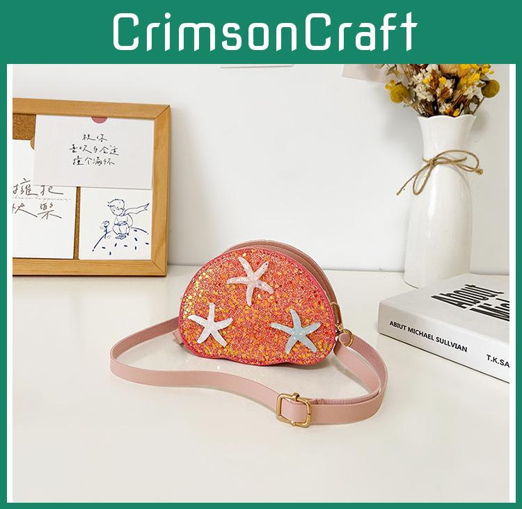 Childrens Cartoon Starfish Sequin Shoulder Bag With Zipper Pocket For Daily Use