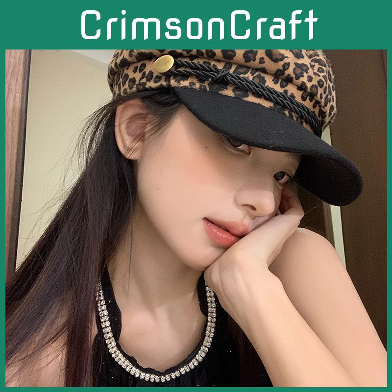 Y2k Leopard Print Beret Hat Unique Embroidered Design For Men's And Women's Style