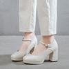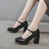 Fashion French Round Toe Mary Jane High Heels Women's Elegant Single Shoes 2024 Female Retro Wine Red Shallow Mouth Thick Heel Pumps