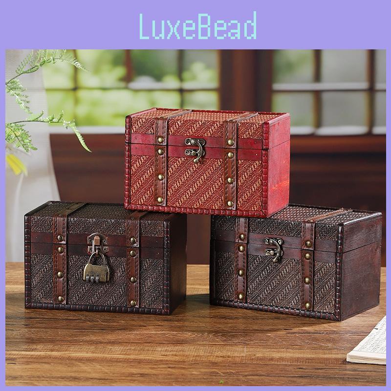 Lockable Wooden Organizer Medicine Box Password Protected Retro Woven Car Storage