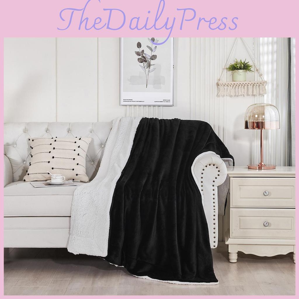 Plush Sherpa Throw Blanket With Solid Color Design For Home And Bed Use