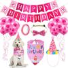 Pet Birthday Party Accessories Dog Hat Bow Tie Triangle Scarf Pull Flag Balloon Set Party Pink Blue Decoration Pet Party Props
