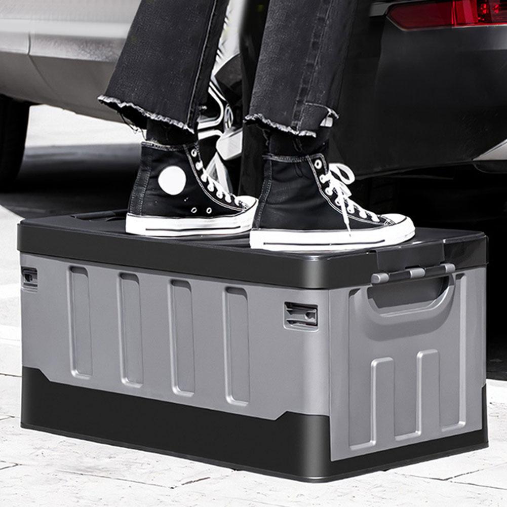60L Car Trunk Storage Box with Lid & Handles Portable Folding Storage Case Car Trunk Sorting Box for SUV Cars Stowing Tidying
