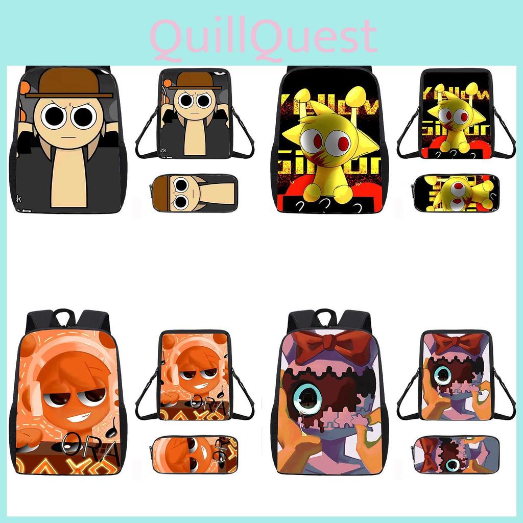 Sprunki Anime Backpack Set With Oxford Fabric And Cushioned Straps For Elementary School Kids