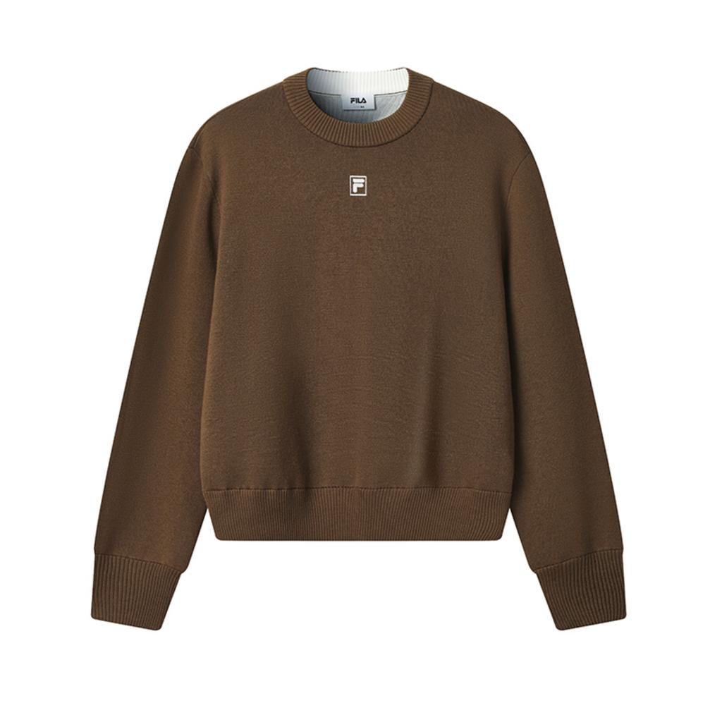 Fila Emerald Classic Comfortable Casual Versatile Knit Sweater Pullover Round Neck Women Sweater Brown F11W544402FBN