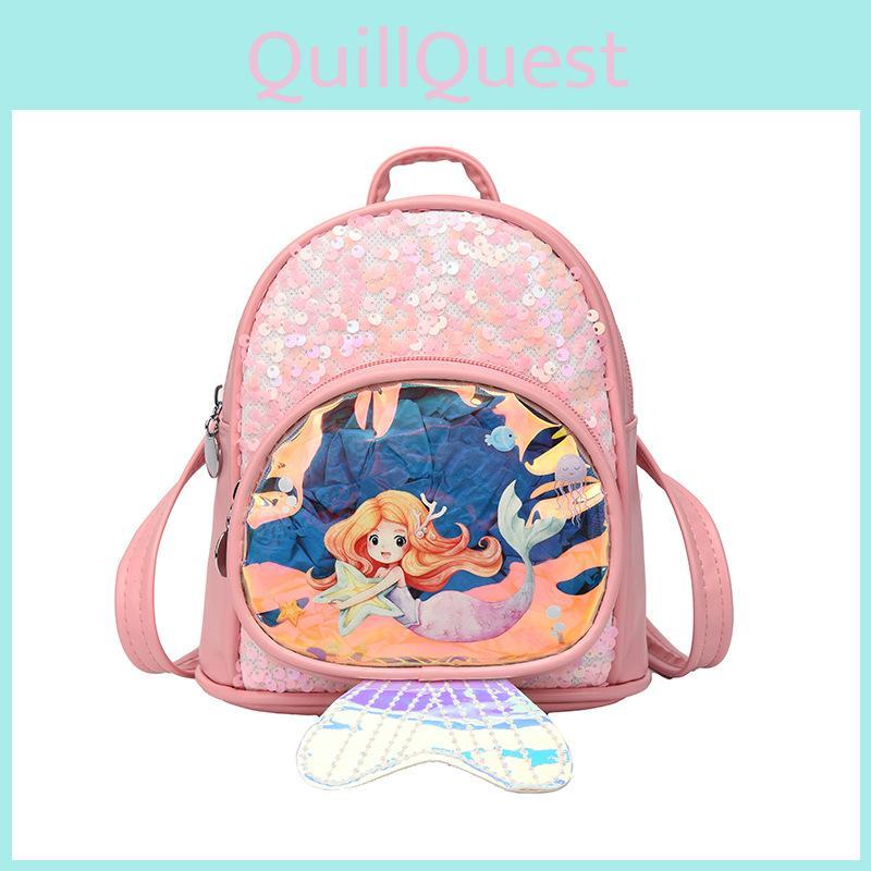 Kids Mermaid Backpack Pu Glitter Sequin Cartoon Girls School Bag For Girls