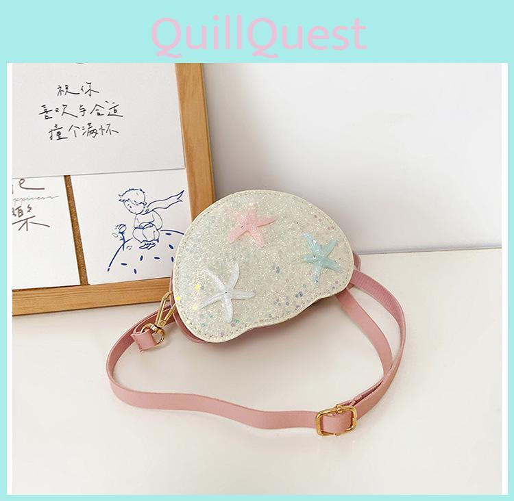 This children's fashion shoulder bag features a sparkling sequin design with a cute cartoon star and shell pattern, enhancing playful style. Made of durable PU leather. Ideal for daily outings, it supports breathable and wear-resistant use, with a secure zip closure and a single shoulder strap. Users can wipe clean with a damp cloth for maintenance.