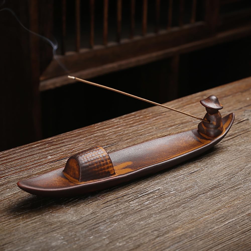 Cedar Eight Fisherman Incense Holder, Boat Shape, Stylish Retro Incense Holder, Cute Interior Decor, Incense Stick Holder