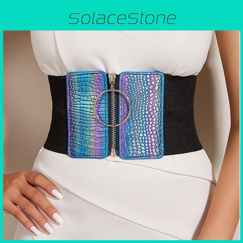 Ladies Wide Elastic Waist Belt With Zipper Ring Design Stylish Accessory For Casual Wear