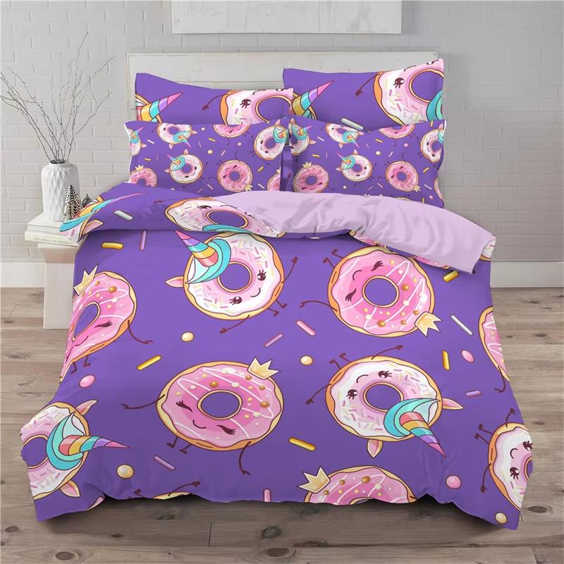 Soft Cute Donuts Duvet Cover Set Dessert Theme Bedding Set For Girls Boys Gifts Microfiber Funny Cartoon Tasty Foods Quilt Cover