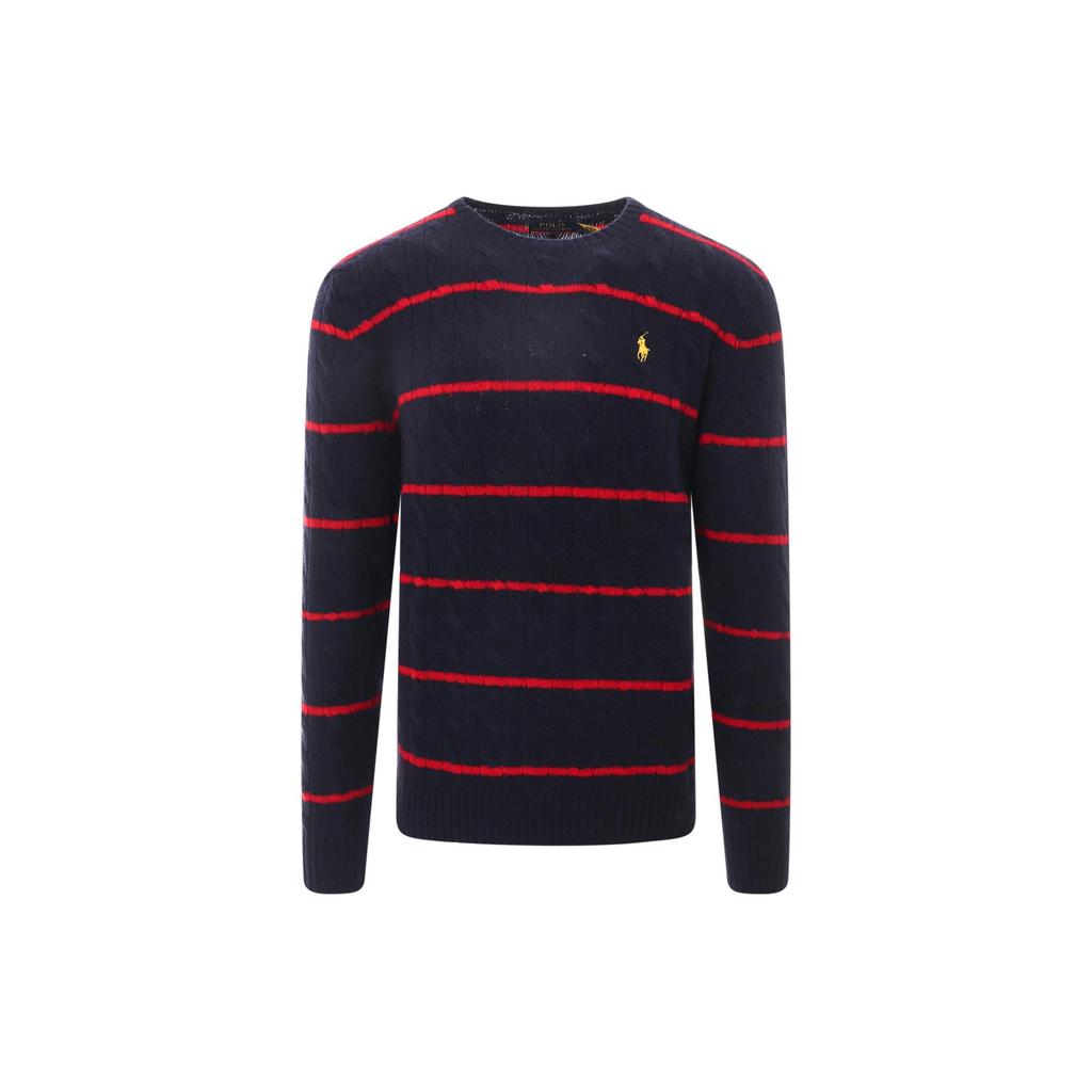 Polo Ralph Lauren FW23 Crew Neck Striped Logo Long Sleeve Knit Sweater Men Sweater Black 710917407-001